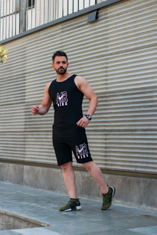 • ست تیشرت شلوارک جودون ست تیشرت شلوارک طرح دار مشکی