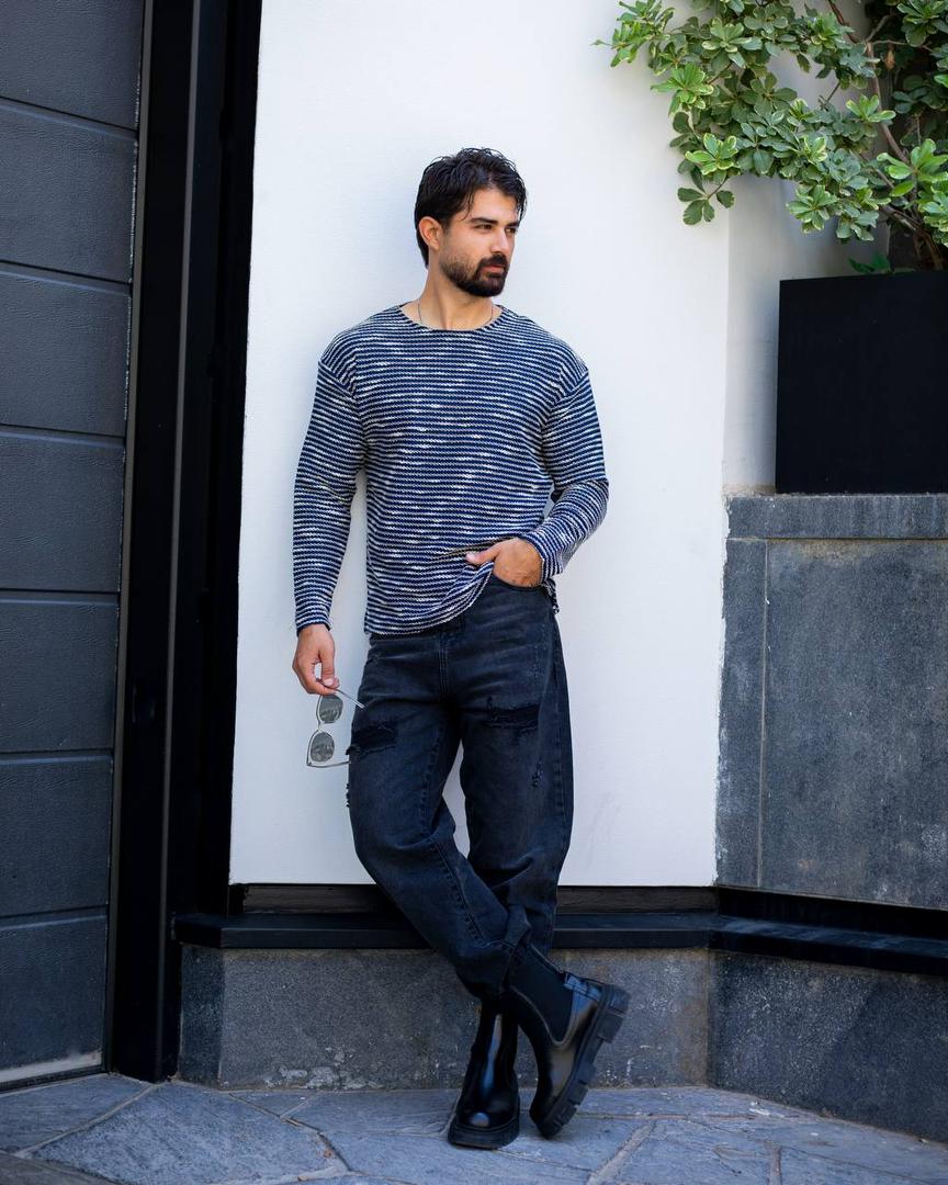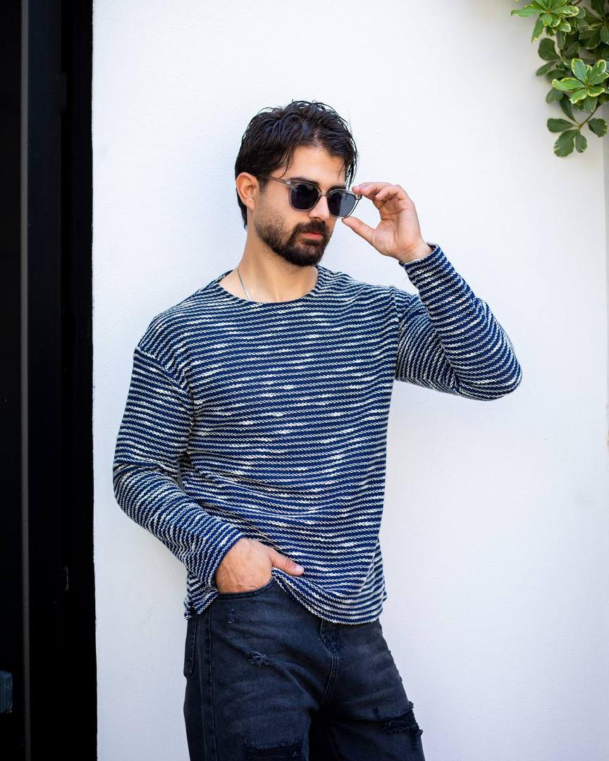تیشرت گردباف مولینه ترک سورمه ای روشن mouline