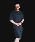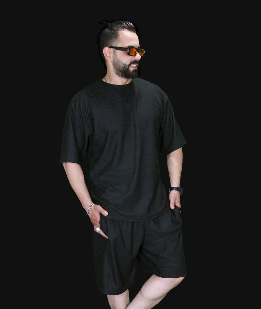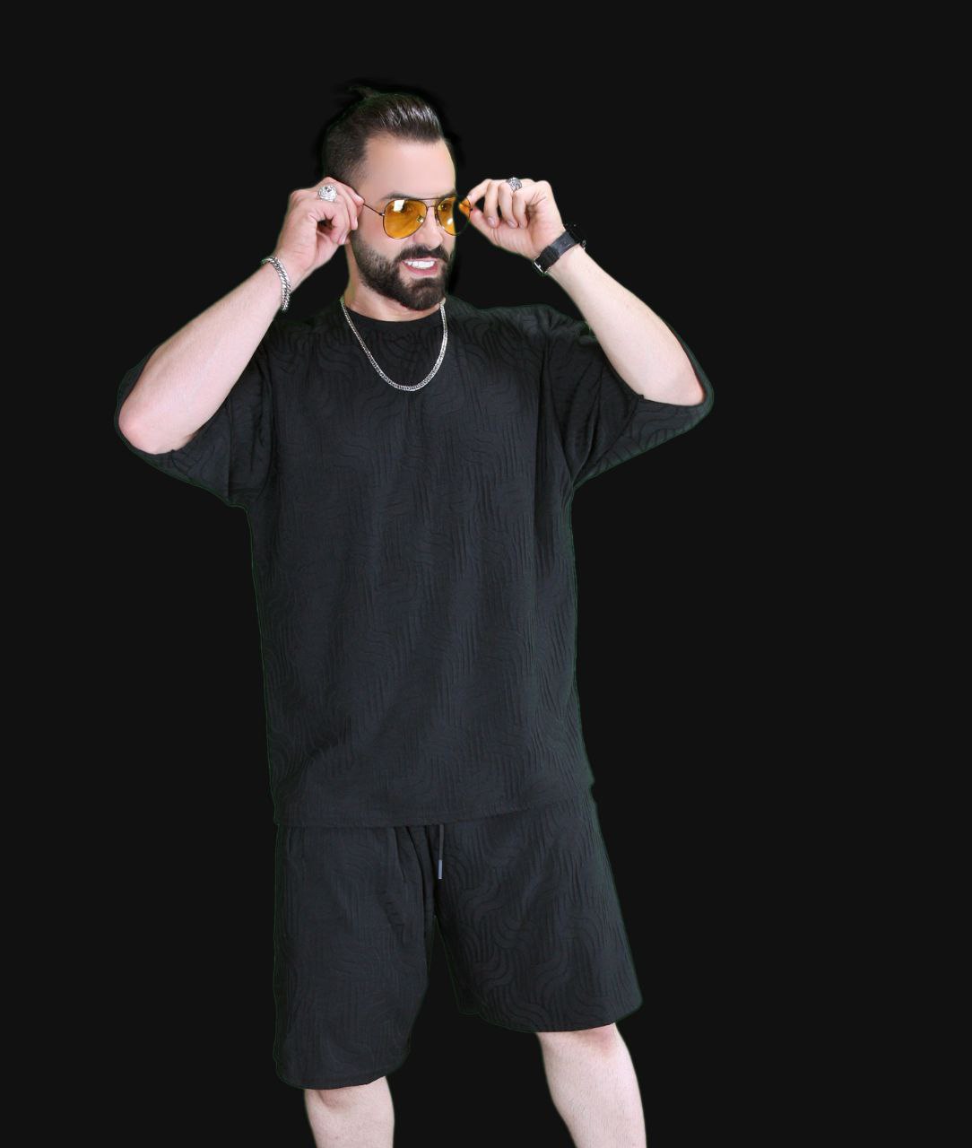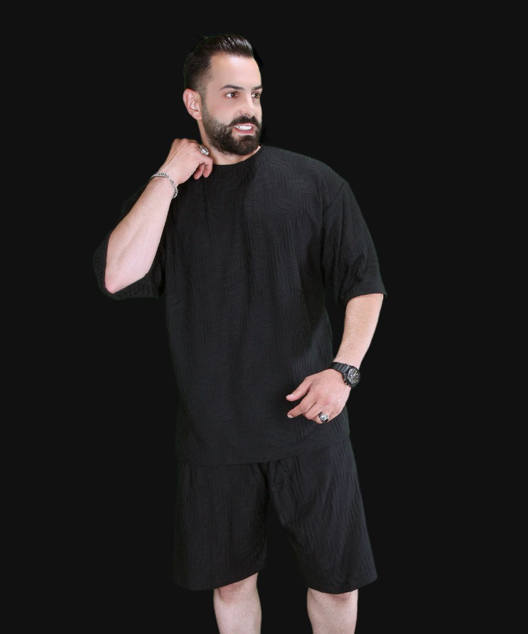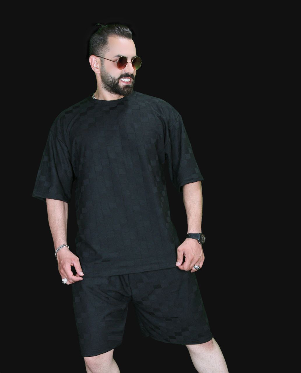 ست تیشرت شلوارک طرح دار مشکی